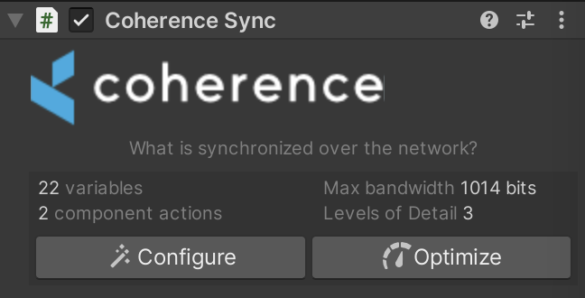 In order to define levels of detail, we have to click the *Optimize button* on a Prefab's `CoherenceSync` component with defined field bindings.