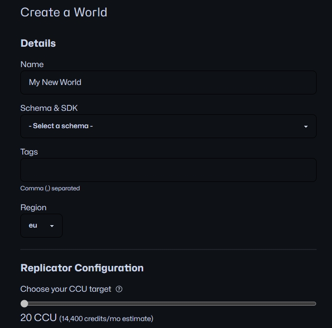 (optional) Choose the schema this World should start with. Usually, the latest schema uploaded is the preferred choice, and this is the default.