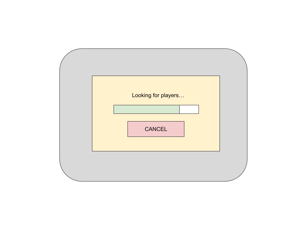 The matchmaking phase is where players are grouped together based on certain criteria. In the case where players just want to jump into the game, the interface can be very simple - press the button to find other players to play with and that’s it.