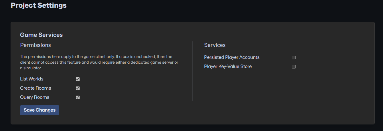 Disabling a service will immediately remove that functionality from your game. Please disable with caution.