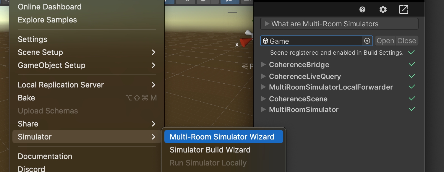 MultiRoomSimulator — listens to join room requests and delegates scene loading (by instantiating CoherenceSceneLoaders)