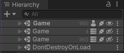 It is possible to visualize each individual Room the Multi-Room Simulator is working on. By default, Simulator connections to Rooms are hidden, as shown in the image above. You can toggle the visibility per scene by clicking the Eye icon. You can also change the default visibility of the loaded scene (defaults to hidden) on the CoherenceScene component: