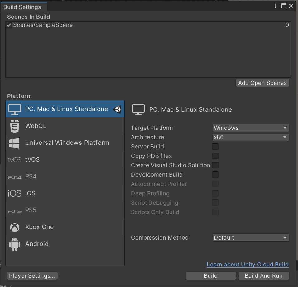 Open the Build Settings window (File > Build Settings). Click on Add Open Scenes to add the current scene to the build.