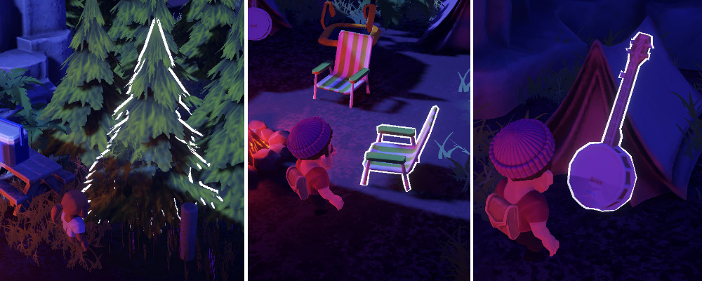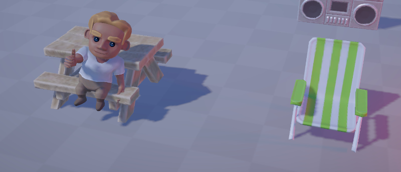 <figure><img src="https://content.gitbook.com/content/naCaDgmbFRSw0e7nxNNK/blobs/9uE0qusyS1YVXyvSqGpr/Interactions.jpg" alt="" width="563"><figcaption><p>The three types of interactable objects: trees, chairs, and pick-ups</p></figcaption></figure>