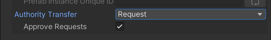 <figure><img src="https://content.gitbook.com/content/naCaDgmbFRSw0e7nxNNK/blobs/M9B0rRTzGmQit3IZOoJ1/AuthorityRequestAndApprove.png" alt=""><figcaption><p>Authority Transfer settings for the crate Prefab.</p></figcaption></figure>