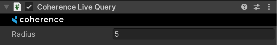 Select one of the two GameObjects named LiveQuery. You will see they have a Coherence Live Query component:
