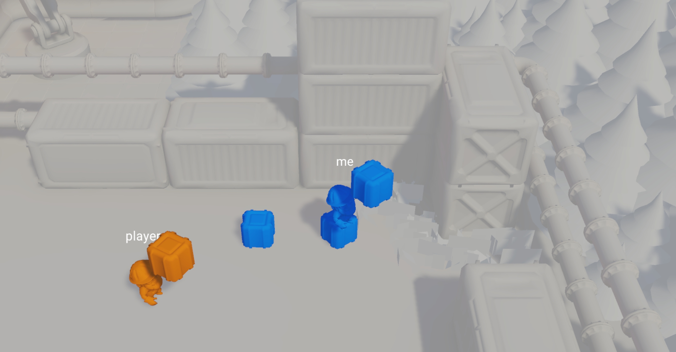 At this point, the first Client to connect is simulating all the crates. However, if we were to leave things like this, interacting with physical objects that are simulated by another Client would be quite unpleasant due to the lag.