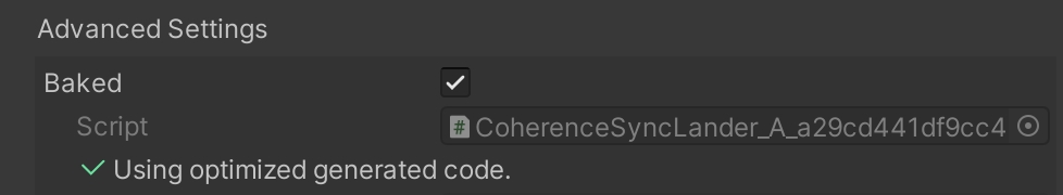 Once the baked code has been generated, Prefabs will automatically make use of it. If you want to switch a particular Prefab to reflection code, you can do so in the Inspector of its CoherenceSync