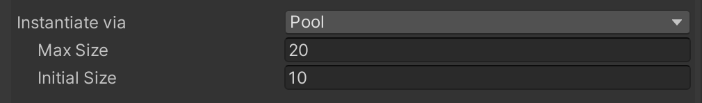 A pool configured like this means that coherence will pre-spawn 10 instances of the Prefab at the beginning of the game.