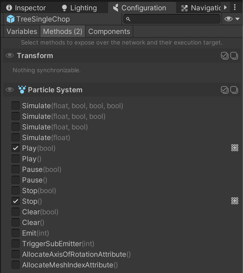 As such, in this project we preferred compacting these calls into methods on their own that are invoked as one Network Command, often without parameters to minimize the data being sent across.