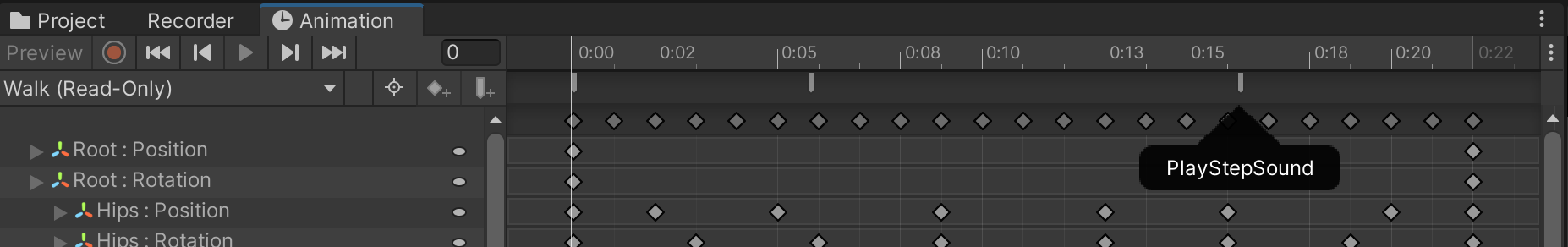 So for footsteps, jump, landing, and more; we used a slightly different strategy. Audio and particles are all played locally as part of the animation, using Unity's own Animation Events.