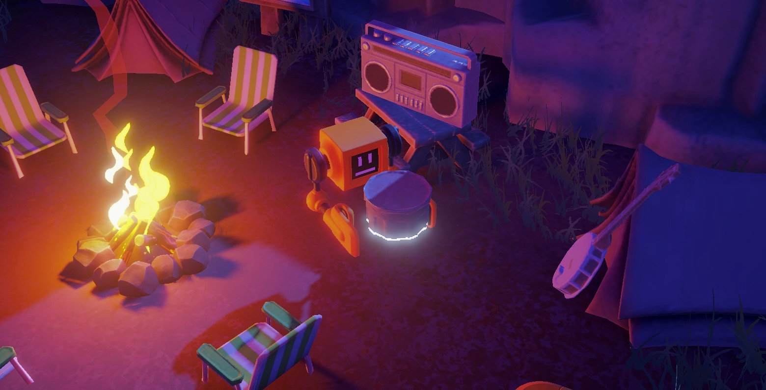 In this project we used this pattern for the little yellow robot that sits beside the camp. If players move one of the camp's key objects out of place, the robot will tidy up after them. It can even recreate burned objects out of thin air!