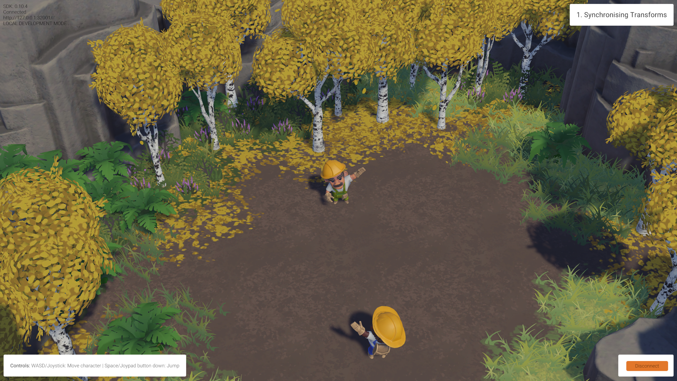 Building on top of previous examples, let's now focus on two key player actions. Press Space to jump, or Q to greet other players. For both of these actions to play their animation, we need to send a command over the network to invoke Animator.SetTrigger() on the other Client.