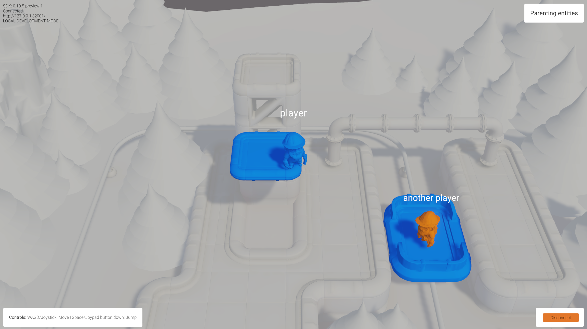 You might have noticed we always mentioned "direct" parenting. One limitation of this simple setup is that the parented network entity has to be a first-level child of the parent one. This doesn't exclude that the parent can have other child GameObjects (and other networked entities!), but networked entities have to be a direct child.