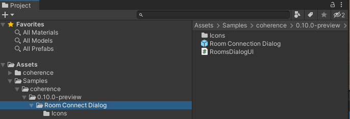 Adding the Room Connect Dialog creates a copy in your project Add the Prefab from the sample to your Scene. Int the example above, that would be