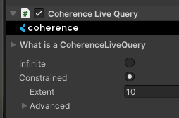 CoherenceLiveQuery is a component used to create an area of interest, that is, an area of the world that the Client is interested in for the purpose of network traffic.