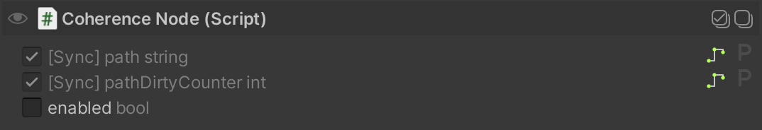 CoherenceNode works using two public fields which are automatically set to sync using the [Sync] attribute.