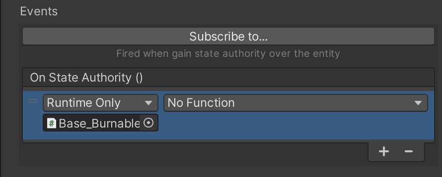 You can hook into the events fired by the CoherenceSync to conveniently structure gameplay in response to key moment of the component's lifecycle. Events are initially hidden, but you can reveal them using the button at the bottom of the Inspector called "Subscribe to...".