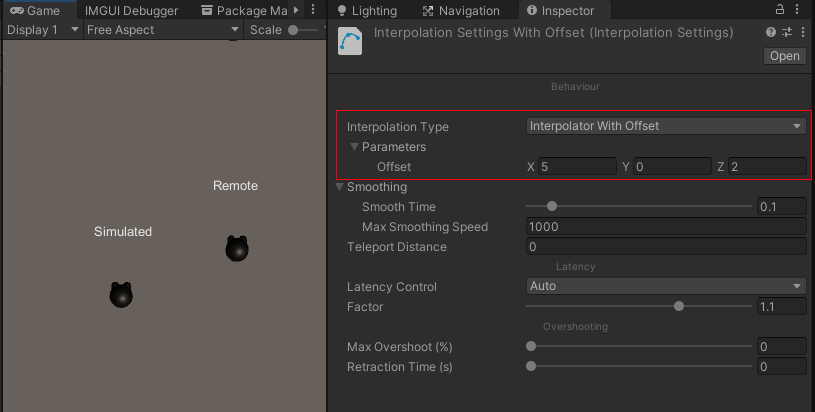Since a Prefab can define separate interpolation types and sample rates for its different bindings, it is possible that not all bindings share the same latency. If, for example, position and rotation are interpolated with different latency, the position and rotation of a vehicle might not match on the remote object.