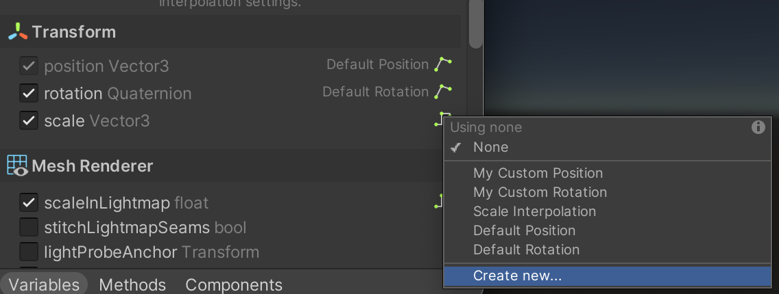Built-in interpolation settings for position and rotation are provided out-of-the-box, but you are free to create your own and use them instead.
