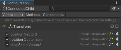 When preparing a CoherenceSync Prefab for use as a child object it is important to always configure the bindings so that position, rotation, and scale are bound. This will ensure that the proper transform state of the entity is maintained when it is parented to another CoherenceSync object.