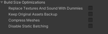 For more information about the options listed under Build Size Optimizations, see this section below.