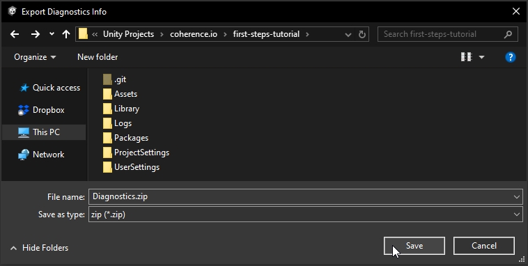 Pick whatever location you want to save your diagnostics file - for example your Desktop.