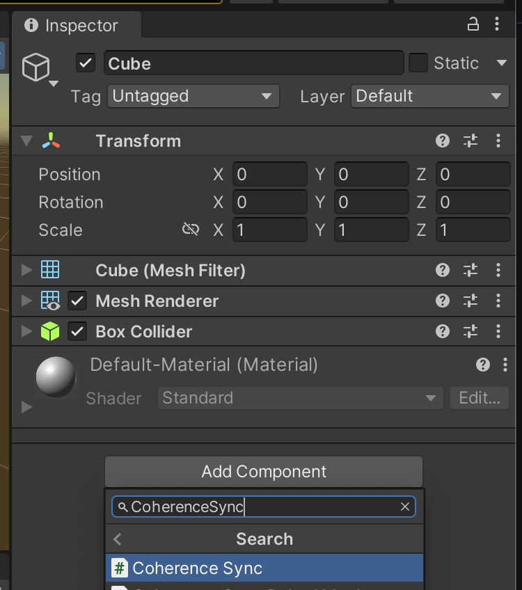 To start networking, simply select a Prefab or GameObject you wish to network, and on the Inspector window, click Sync with coherence.