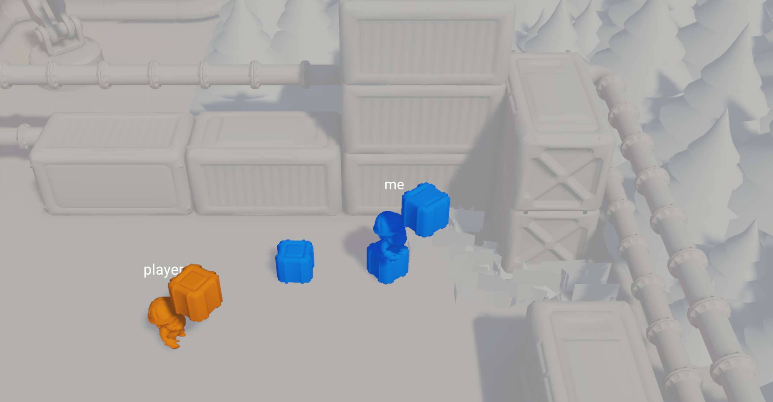 As mentioned before, pressing **Tab** (or clicking the Joystick) switches to an authority view. It's very interesting to see how crates switch sides when a player interacts with them.