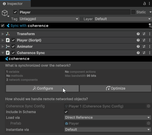 coherence makes game objects networked by adding a CoherenceSync component, simple as that. There is no need to derive from a special "NetworkBehavior" class, which is especially painful when your project already has a base class for all in-game objects that provides some critical utilities.