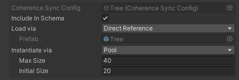 Whenever you start synchronizing one of your Prefabs, either by adding the CoherenceSync component manually or clicking the Sync with coherence toggle in the Prefab Inspector, coherence will create a CoherenceSyncConfig ScriptableObject to track the existence of this entity, and add it to a registry.