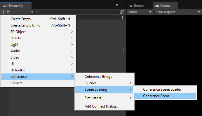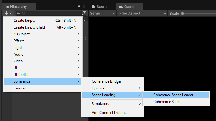 GameObject / coherence / Scene Loading / Coherence Scene menu item