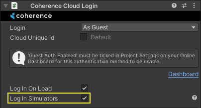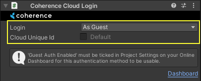 The easiest way to log in to coherence Cloud is to set Login to As Guest.