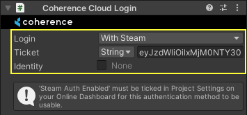 The With Steam login method can be used to log in to coherence Cloud with a Steam account.