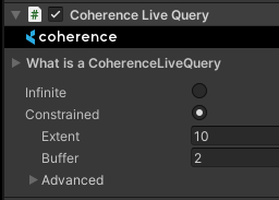 **CoherenceLiveQuery** is a component used to create an [area of interest](https://docs.coherence.io/1.8/manual/optimization/areas-of-interest), that is, an area of the world that the Client is interested in for the purpose of network traffic.