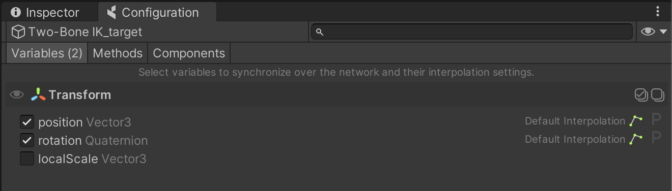 In addition to position and rotation, we also choose to sync the animation parameter ClawsOpen, and enable Animator.SetTrigger()
