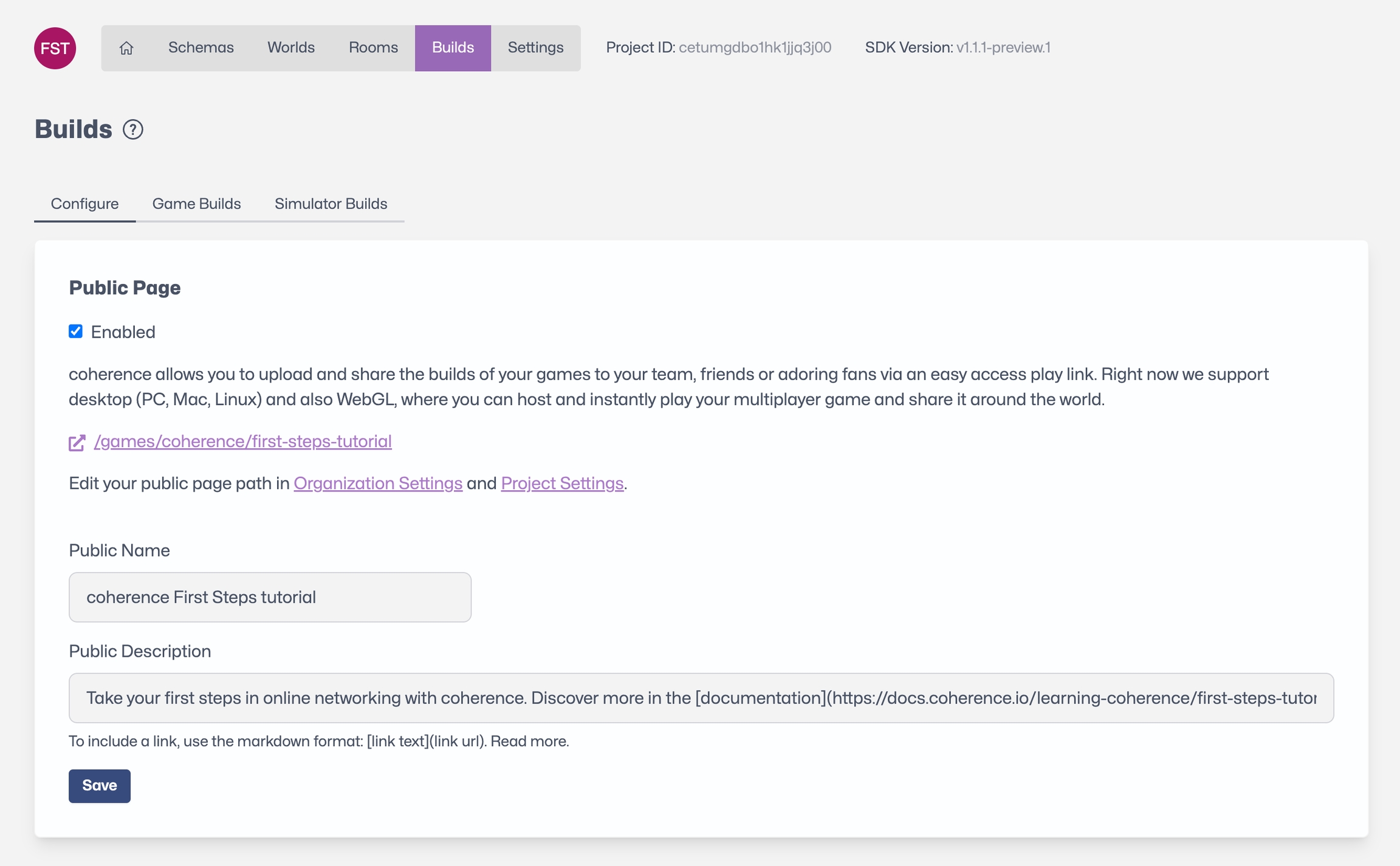 coherence allows you to upload and share the builds of your games to your team, friends or adoring fans via an easy-access play link.