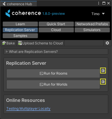 For further information and for more complex use of local Replication Servers, see the [Self-Hosting](https://docs.coherence.io/2.0/hosting/self-hosting#launching-the-replication-server) section.