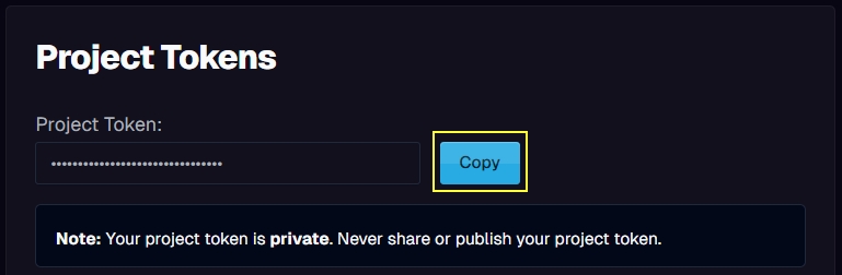 Next go to the Settings page of the project, and scroll down to the Project Tokens section to find the Project Token.
