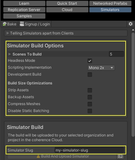 SimulatorBuildPipeline.PrepareHeadlessBuild This method will add the COHERENCE_SIMULATOR scripting symbol, will set the build sub target to Server (for Unity 2021) and it will change the platform to Linux. It is necessary to perform these steps in an isolated Unity execution, because in batch mode, there is no editor loop that will make sure your assemblies are reloaded with the changes.