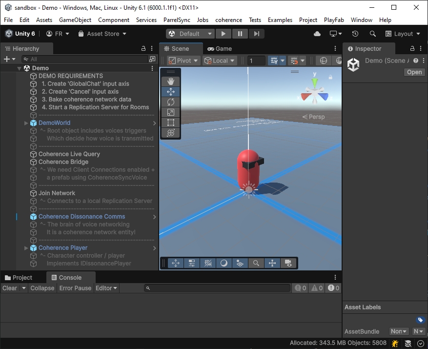 In the demo content, this Prefab is called Coherence Dissonance Comms