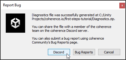 Finally, you will get the option of reporting your bug in the coherence community forums (which is our preferred way) or via Discord.