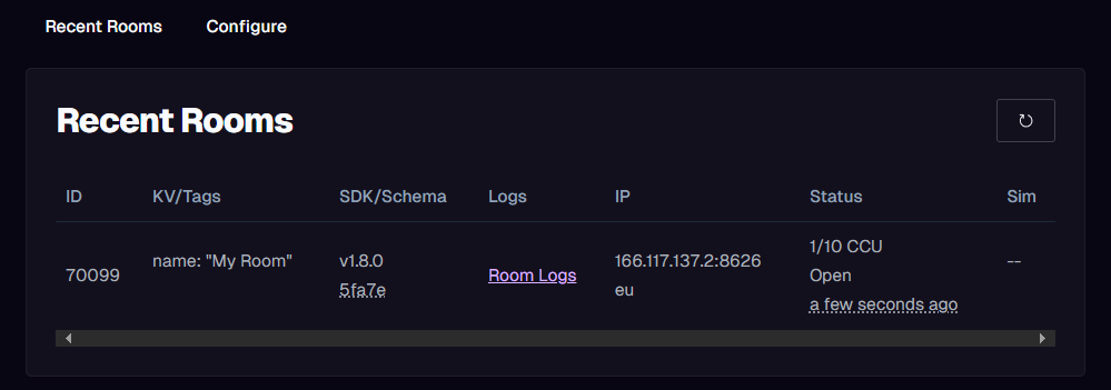From the Online Dashboard, you can configure what size you want your Simulator instances to be. To attach a Simulator to a Room, send the "Simulator slug" uploaded through the SDK with the Rooms creation request. When using the Unity Cloud Service API to create Rooms, the Simulator uploaded through the SDK is automatically assigned in the creation request.