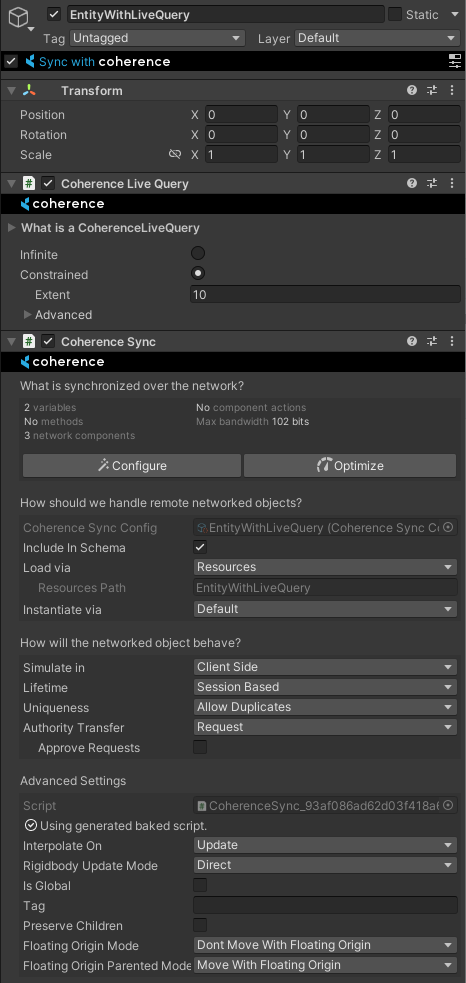 public CoherenceSync liveQueryPrefab;