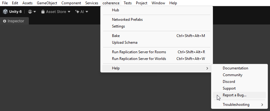 To get started, you can open the bug report dialog using the top menu item coherence > Help > Report a Bug...