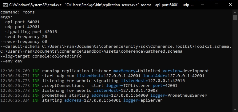 If the console opens correctly and you don't see an error line (they show up in red), it means your Replication Server is running! Now you should be able to connect to it, in the game.